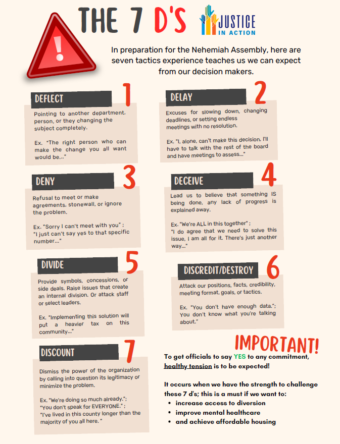 This insert comes directly from our parent organization, DART (Direct Action and Research Training). But if you came last year, you’ll recognize many of these statements as things Pat Condon used to derail the negotiation and get the audience on his side. We aren’t against him or the other officials. We simply want our community to have life, and have it abundantly.